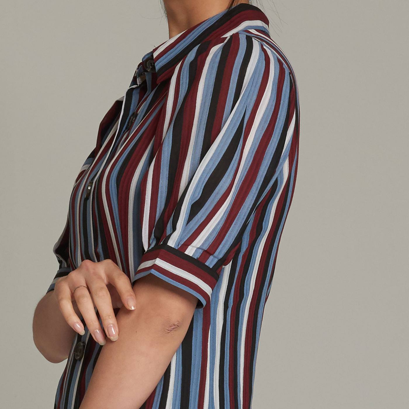 소매의 볼륨감이 우아하고 컬러감이 시크한 롱 셔츠입니다.