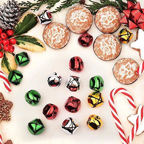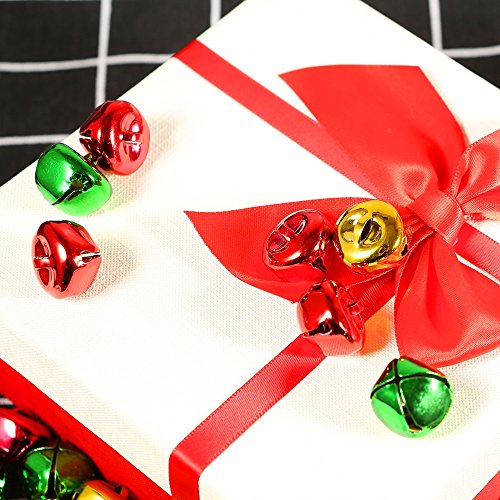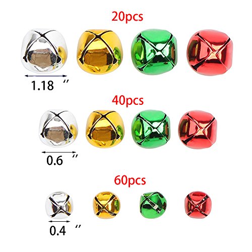MISS FANTASY Christmas Jingle Bells for Crafts Xmas DIY Set with String in Assorted Size Include 120 Pcs