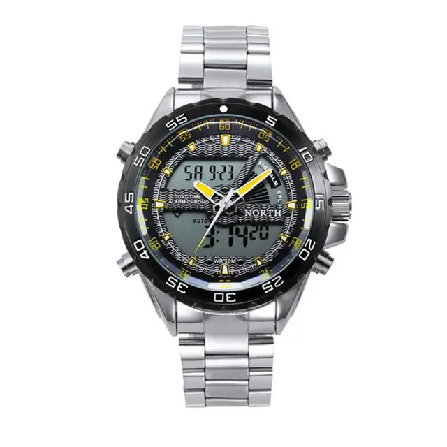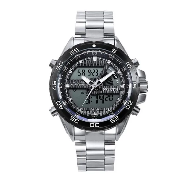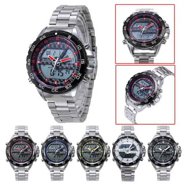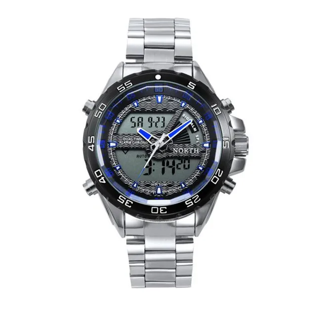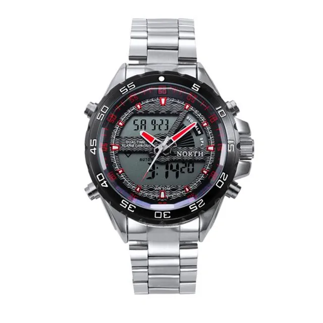 상품 내용 듀얼 디스플레이 시계 남성 방수 전체 스틸 스포츠 시계 LED 디지털 시계 시간 시계 horloge relogio masculino 도매 무료 배송 특징: