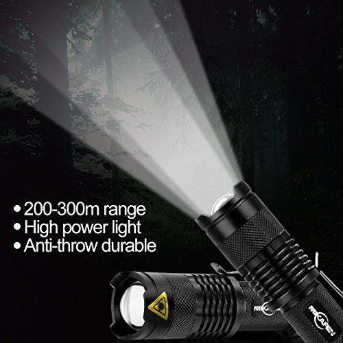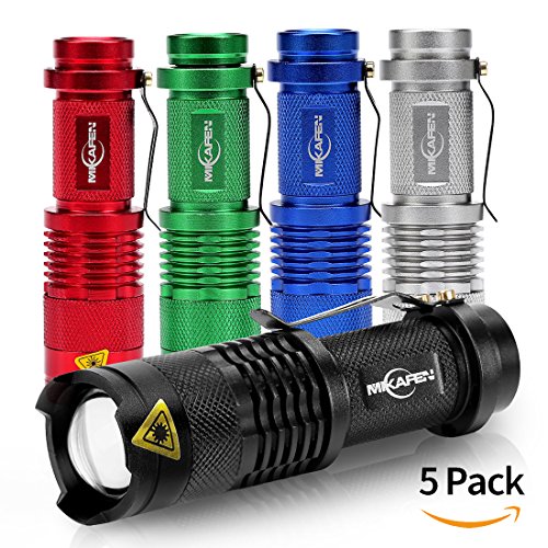 5Pack Flashlights Mini Cree Q5 Led Torch 300lm 3 Modes (Light - Low Light - Strobe)adjustable Focus Zoomable Flashlight