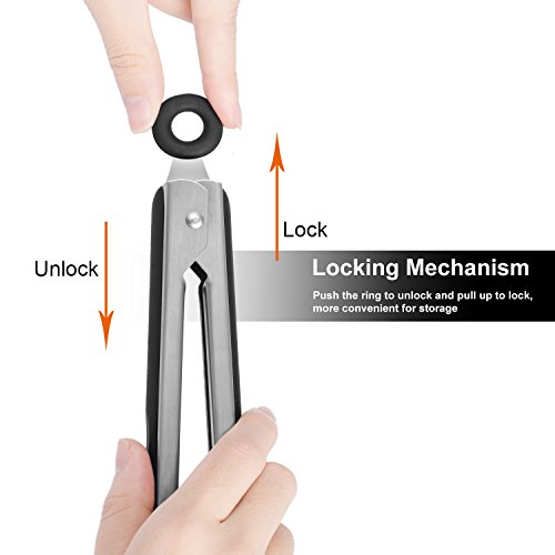 Studio : Benewell Publisher : Benewell Product Description How to Use Safety locking ring design, pull it out to lock and push it in to open, easy to store and control, hang it on the wall when not in use, saving your kitchen space. Notes: 1.The TPR cushion is detachable, convenient to wash the oil and food residue. 2. Just pull it in gently, do not hold the ring completely in case hurting your finger. Specification Material: TPR Stainless G.W.: 10.2oz Package Contents 1 x 9" Kitchen Tong 1 x 12" Kitchen Tong 0