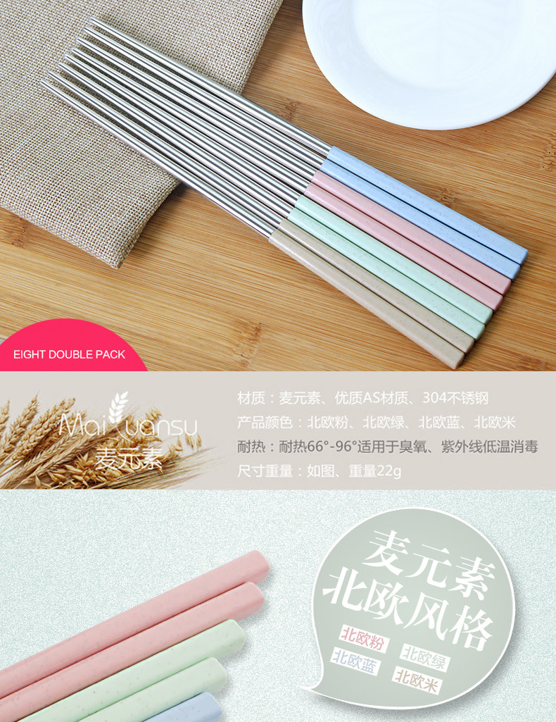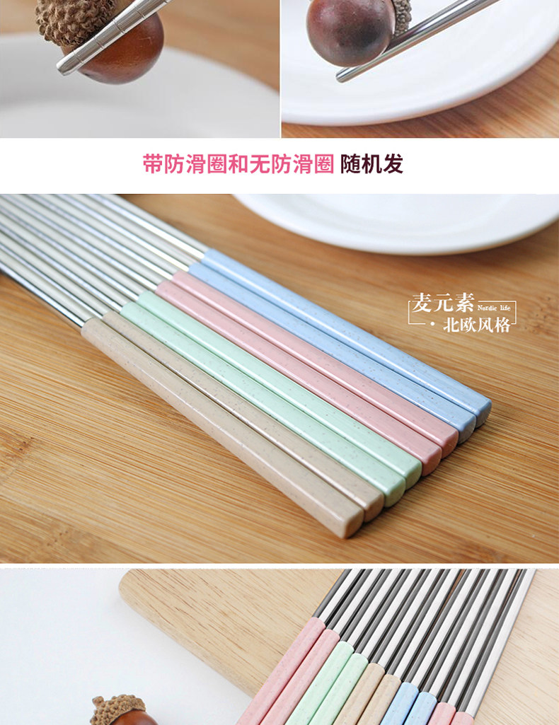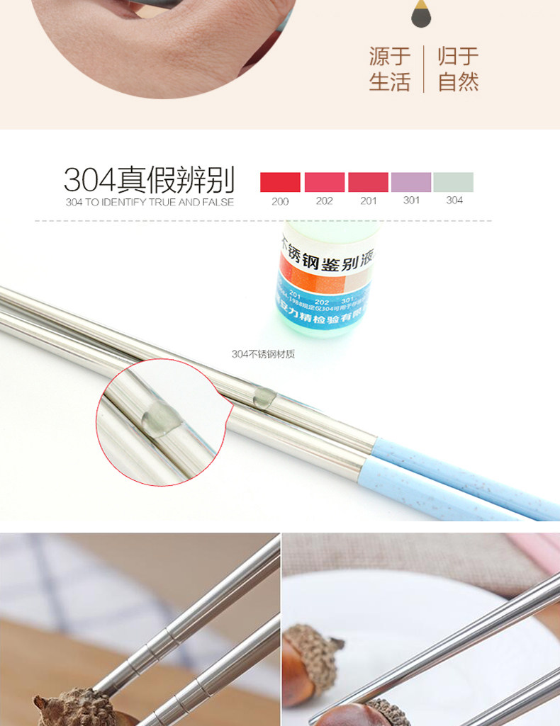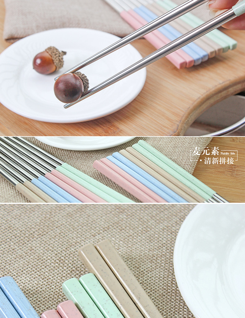 创意304不锈钢筷子8双套装4家用家庭装防霉长铁快子金属酒店餐具