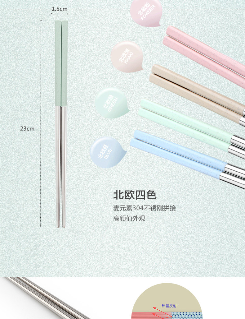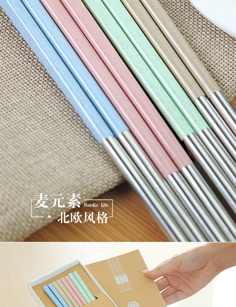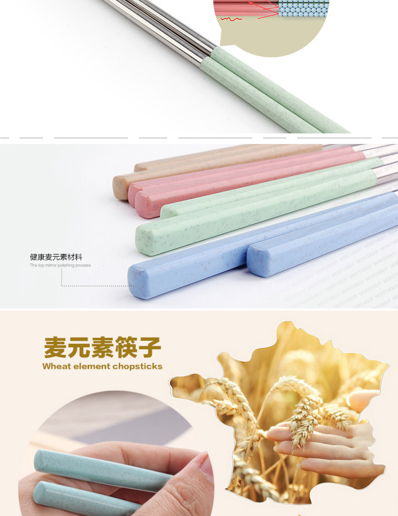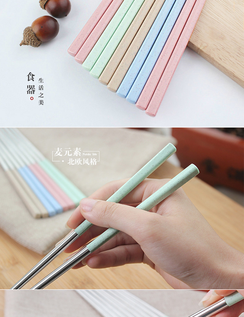 创意304不锈钢筷子8双套装4家用家庭装防霉长铁快子金属酒店餐具
