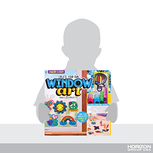 Unleash your creativity and transform your windows into works of art with the Made By Me Window Art activity kit! With 12 suncatcher shapes, 8 vibrant window paints and an acetate sheet to create personalized window clings, this kit makes for the perfect rainy day craft or group activity. When you’re finished painting suncatchers, trace the illustrations from the included design booklet onto the acetate sheet, or create your own personalized designs. Display your colorful suncatcher creations using the included cording and mini suction cups. The suction cups easily attach to windows, mirrors and other glass surfaces. The Made By Me Window Art activity kit is a great gift for crafters ages 6 years and up!Feature