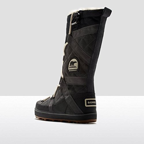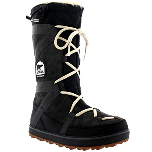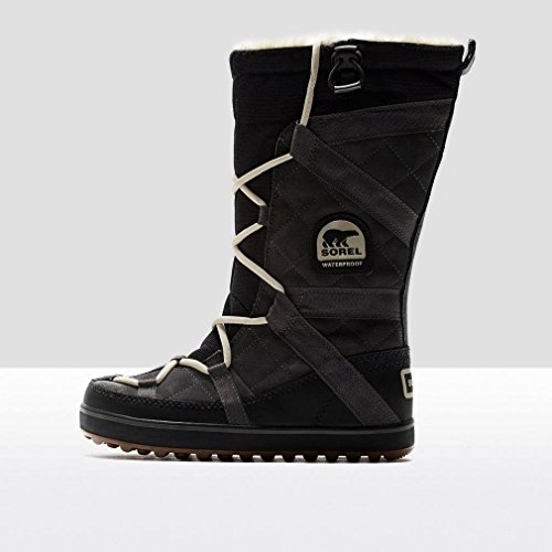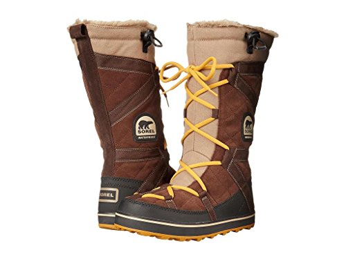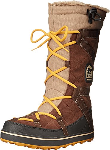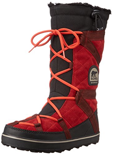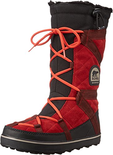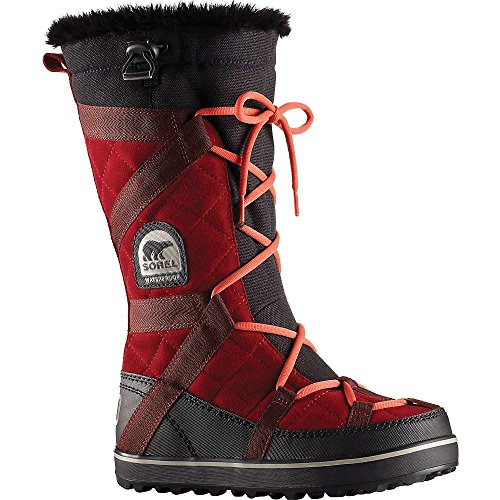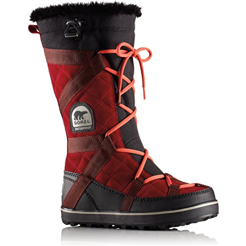 Sporty Sorel boots cut from waterproof suede, and detailed with webbed banding. Faux fur trim and low-pile fleece lining add a cozy touch. Lace-up closure and elastic drawstring top line. Nubby rubber sole.Feature