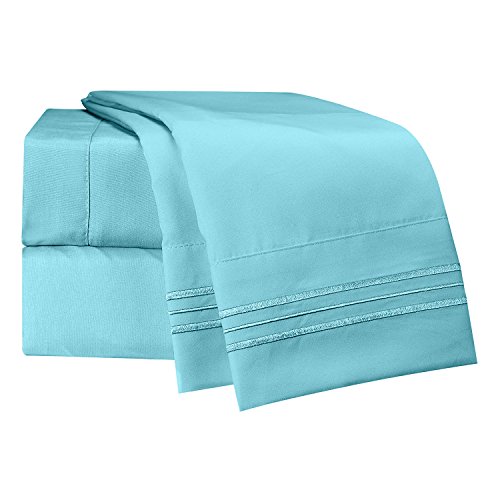 Bed Sheet Bedding Set, 100% Soft Brushed Microfiber with Deep Pocket Fitted Sheet - TWIN XL - AQUA LIGHT BLUE - 1800 Luxury Bedding Collection, Hypoallergenic & Wrinkle Free Bedroom Linen Set