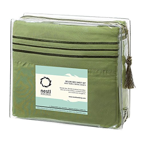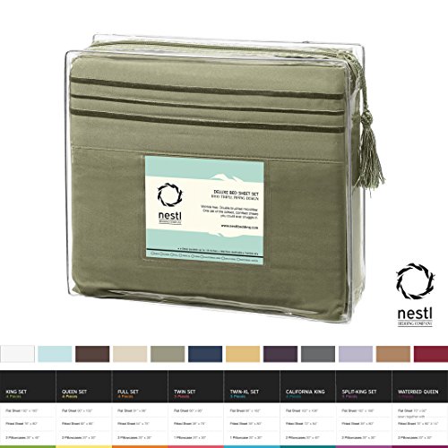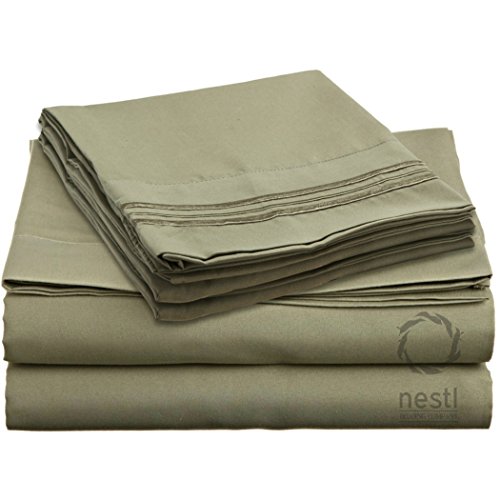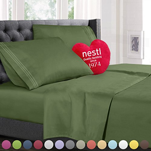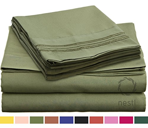 Nestl Bedding 1800 Bedding Collection Double Brushed Microfiber Bedding Set with Deep Pocket Fitted Sheet, Full, Sage Olive Green