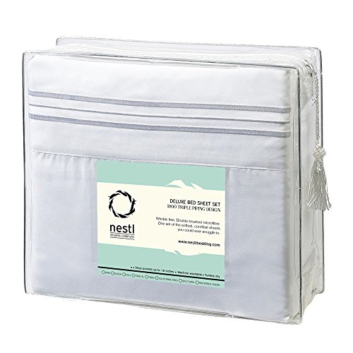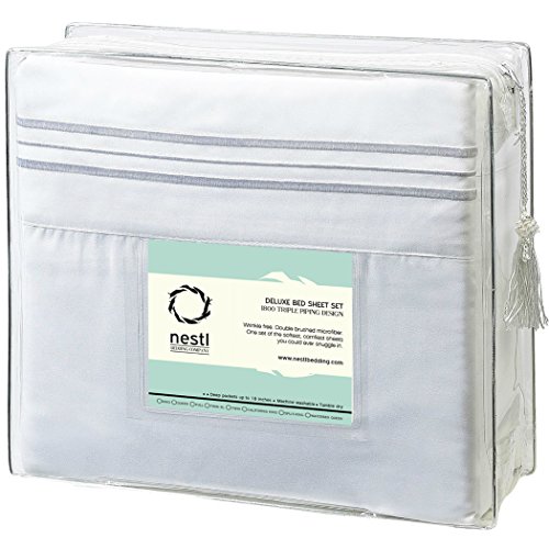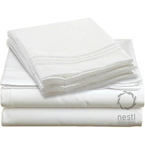 Nestl Bedding Soft Microfiber Hypoallergenic King Bed Sheets Set with Pocket, White (Set of 4)