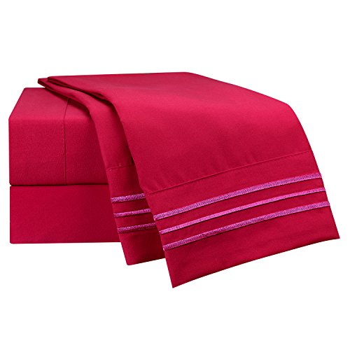 Twin Size Bed Sheets Set, Red Burgundy, Highest Quality Bedding Sheet Set, 3-Piece (Single) Bed Set, Extra Deep Pockets Fitted Sheet, 100% Luxury Soft Microfiber, Hypoallergenic, Cool & Breathable
