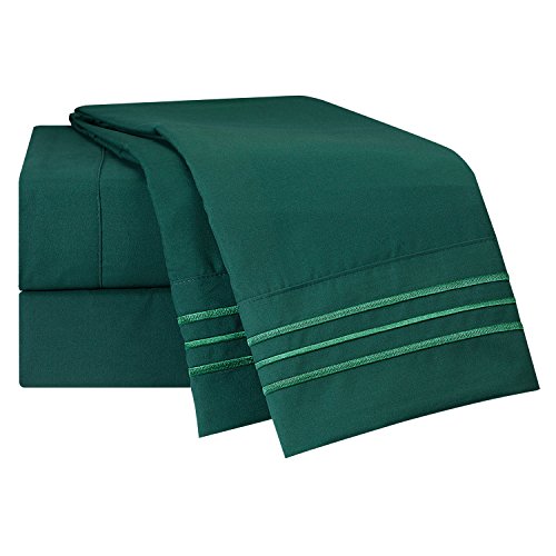 Bed Sheet Bedding Set, 100% Soft Brushed Microfiber with Deep Pocket Fitted Sheet - CAL KING - HUNTER GREEN - 1800 Luxury Bedding Collection, Hypoallergenic & Wrinkle Free Bedroom Linen Set By Nestl Bedding