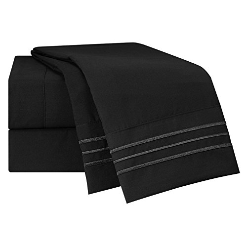 Bed Sheet Bedding Set, 100% Soft Brushed Microfiber with Deep Pocket Fitted Sheet - FULL DOUBLE - BLACK - 1800 Luxury Bedding Collection, Hypoallergenic & Wrinkle Free Bedroom Linen Set