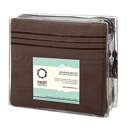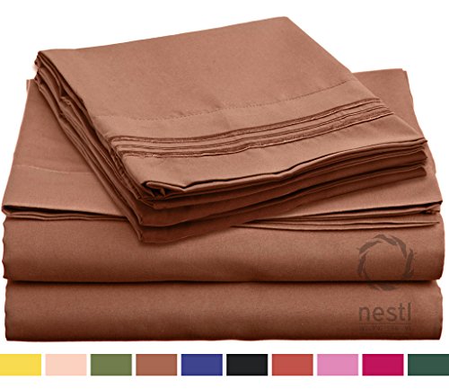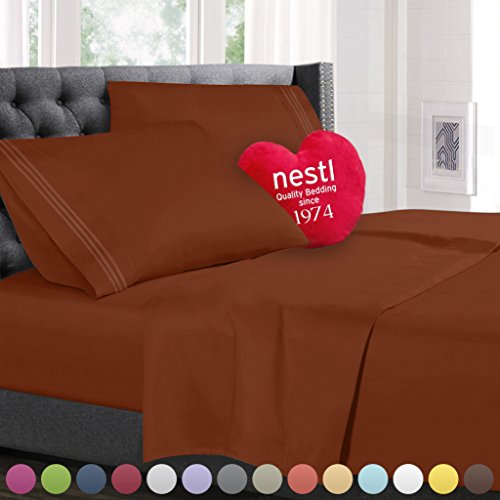 Nestl Bedding Hypoallergenic Soft Microfiber 5-Piece Split King Bed Sheet Set, Chocolate Brown