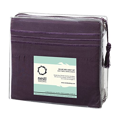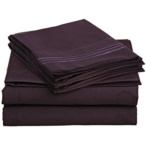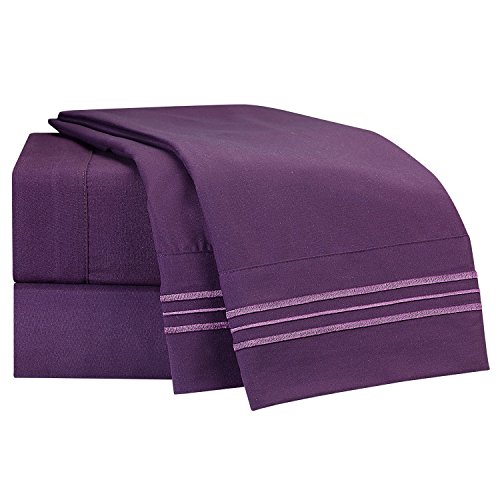Bed Sheet Bedding Set, 100% Soft Brushed Microfiber with Deep Pocket Fitted Sheet - TWIN XL - PURPLE EGGPLANT - 1800 Luxury Bedding Collection, Hypoallergenic & Wrinkle Free Bedroom Linen Set