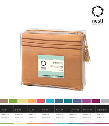 Bed Sheet Bedding Set, Cal King Size, Apricot Buff Orange, 100% Soft Brushed Microfiber Fabric with Deep Pocket Fitted Sheet, 1800 Luxury Bedding Collection, Hypoallergenic & Wrinkle Free Bedroom Linen Set By Nestl Bedding