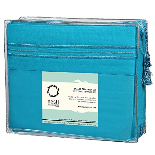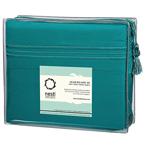 Bed Sheet Bedding Set, Twin Single Size, Teal, 100% Soft Brushed Microfiber Fabric with Deep Pocket Fitted Sheet, 1800 Luxury Bedding Collection, Hypoallergenic & Wrinkle Free Bedroom Linen Set By Nestl Bedding