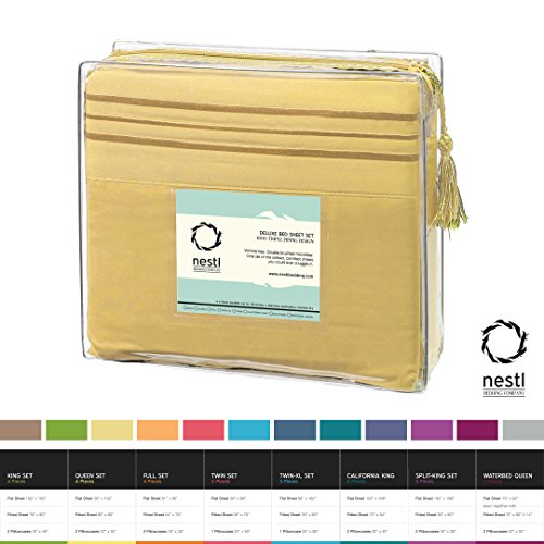 Bed Sheet Bedding Set, 100% Soft Brushed Microfiber with Deep Pocket Fitted Sheet - FULL - YELLOW - 1800 Luxury Bedding Collection, Hypoallergenic & Wrinkle Free Bedroom Linen Set By Nestl Bedding
