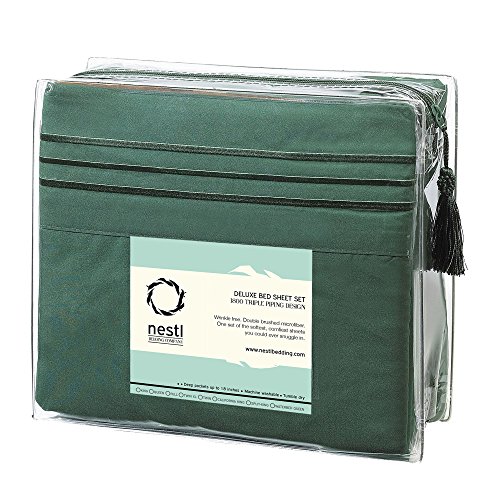 Bed Sheet Bedding Set, 100% Soft Brushed Microfiber with Deep Pocket Fitted Sheet - SPLIT KING - HUNTER GREEN - 1800 Luxury Bedding Collection, Hypoallergenic & Wrinkle Free Bedroom Linen Set By Nestl Bedding