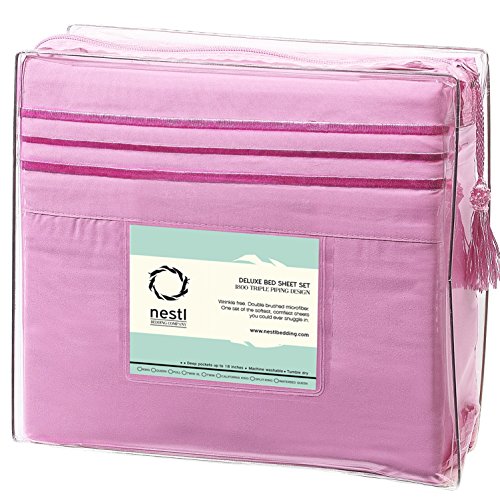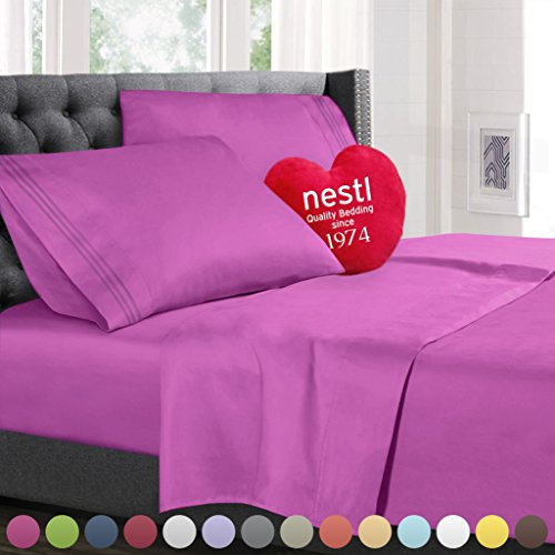 Bed Sheet Bedding Set, Twin Single Size, Radiant Orchid Purple, 100% Soft Brushed Microfiber Fabric with Deep Pocket Fitted Sheet, 1800 Luxury Bedding Collection, Hypoallergenic & Wrinkle Free Bedroom Linen Set By Nestl Bedding