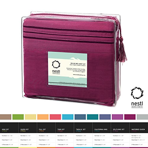 Bed Sheet Bedding Set, Cal King Size, Vivacious Magenta, 100% Soft Brushed Microfiber Fabric with Deep Pocket Fitted Sheet, 1800 Luxury Bedding Collection, Hypoallergenic & Wrinkle Free Bedroom Linen Set By Nestl Bedding