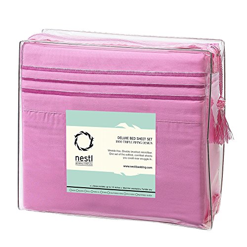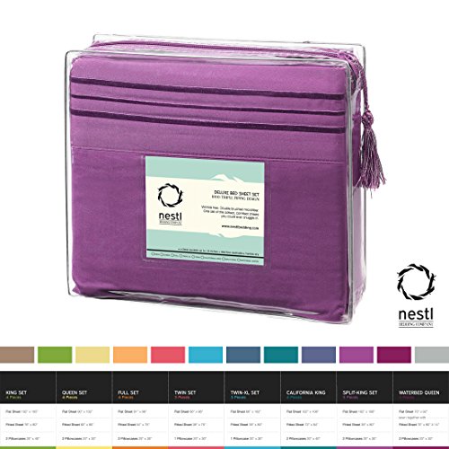 Bed Sheet Bedding Set, King Size, Radiant Orchid Purple, 100% Soft Brushed Microfiber Fabric with Deep Pocket Fitted Sheet, 1800 Luxury Bedding Collection, Hypoallergenic & Wrinkle Free Bedroom Linen Set By Nestl Bedding