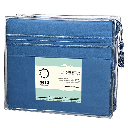 Bed Sheet Bedding Set, King Size, Steel Blue, 100% Soft Brushed Microfiber Fabric with Deep Pocket Fitted Sheet, 1800 Luxury Bedding Collection, Hypoallergenic & Wrinkle Free Bedroom Linen Set By Nestl Bedding