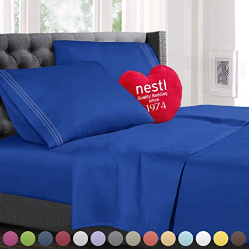 Bed Sheet Bedding Set, 100% Soft Brushed Microfiber with Deep Pocket Fitted Sheet - TWIN - ROYAL BLUE - 1800 Luxury Bedding Collection, Hypoallergenic & Wrinkle Free Bedroom Linen Set By Nestl Bedding
