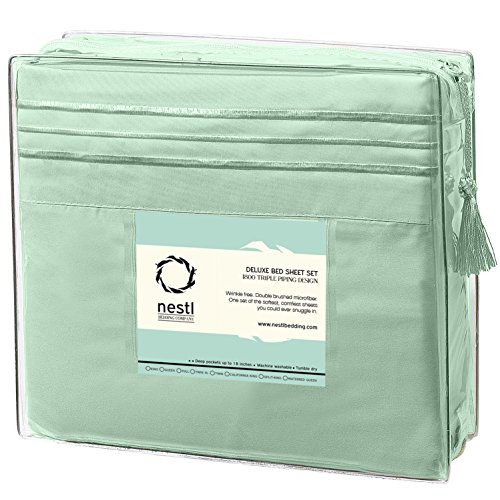 Bed Sheet Bedding Set, King, Mint, 100% Soft Brushed Microfiber Fabric Deep Pocket Fitted Sheet, 1800 Luxury Bedding Collection, Hypoallergenic & Wrinkle Free Bedroom Linen Set By Nestl Bedding