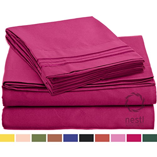 Bed Sheet Bedding Set, Twin Single Size, Vivacious Magenta, 100% Soft Brushed Microfiber Fabric with Deep Pocket Fitted Sheet, 1800 Luxury Bedding Collection, Hypoallergenic & Wrinkle Free Bedroom Linen Set By Nestl Bedding