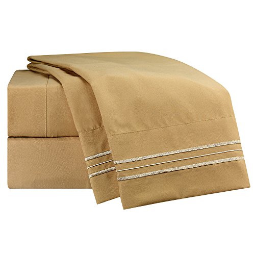 Bed Sheet Bedding Set, 100% Soft Brushed Microfiber with Deep Pocket Fitted Sheet - TWIN XL - CAMEL GOLD - 1800 Luxury Bedding Collection, Hypoallergenic & Wrinkle Free Bedroom Linen Set