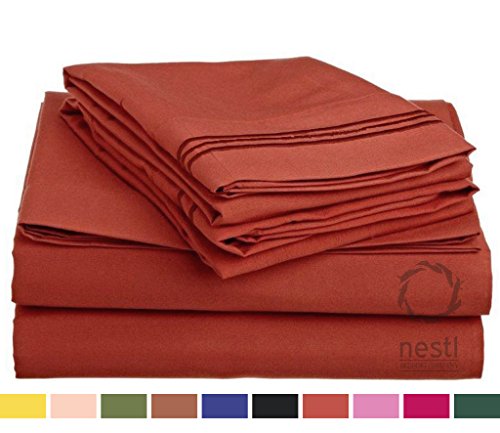 Bed Sheet Bedding Set, 100% Soft Brushed Microfiber with Deep Pocket Fitted Sheet - FULL - RUST SIENNA (ORANGE BROWN) - 1800 Luxury Bedding Collection, Hypoallergenic & Wrinkle Free Bedroom Linen Set By Nestl Bedding