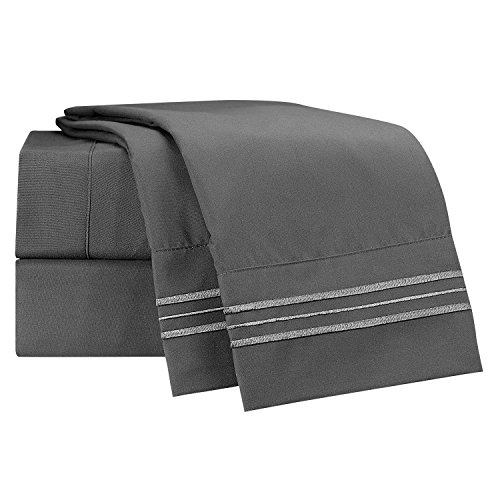 Twin Size Bed Sheets Set, Grey Charcoal (Gray), Highest Quality Bedding Sheet Set on Amazon, 3-Piece Bed Set, Deep Pockets Fitted Sheet, 100% Luxury Soft Microfiber, Hypoallergenic, Cool & Breathable