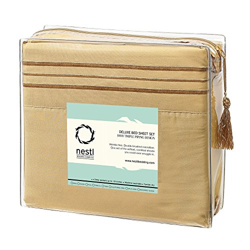 Bed Sheet Bedding Set, Twin Size, Mustard Yellow, 100% Soft Brushed Microfiber Fabric with Deep Pocket Fitted Sheet, 1800 Luxury Bedding Collection, Wrinkle Free Bedroom Linen Set By Nestl Bedding