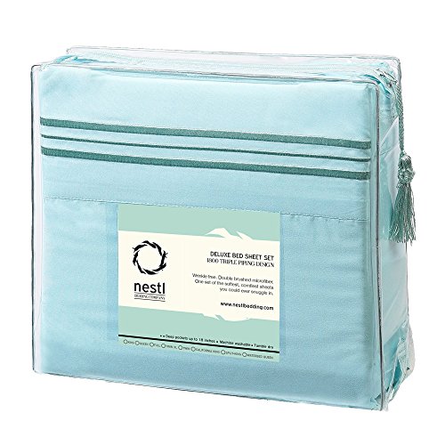 Bed Sheet Bedding Set, Twin Single Size, Beach Blue (Teal), 100% Soft Brushed Microfiber Fabric with Deep Pocket Fitted Sheet, 1800 Luxury Bedding Collection, Hypoallergenic & Wrinkle Free Bedroom Linen Set By Nestl Bedding