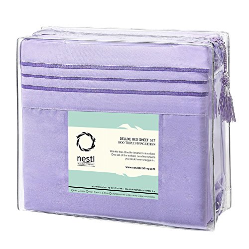 Bed Sheet Bedding Set, Queen, Lilac, 100% Soft Brushed Microfiber Fabric Deep Pocket Fitted Sheet, 1800 Luxury Bedding Collection, Hypoallergenic & Wrinkle Free Bedroom Linen Set By Nestl Bedding
