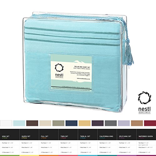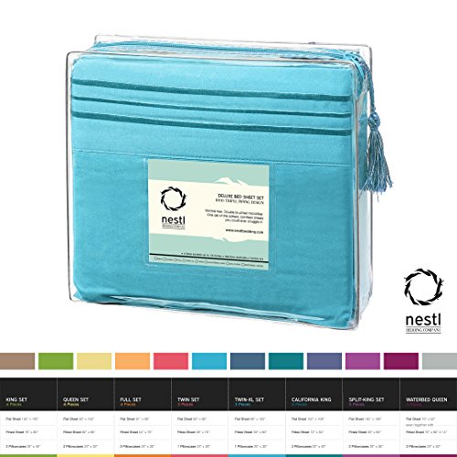 Bed Sheet Bedding Set, Full Double Size, Beach Blue (Teal), 100% Soft Brushed Microfiber Fabric with Deep Pocket Fitted Sheet, 1800 Luxury Bedding Collection, Hypoallergenic & Wrinkle Free Bedroom Linen Set By Nestl Bedding