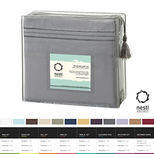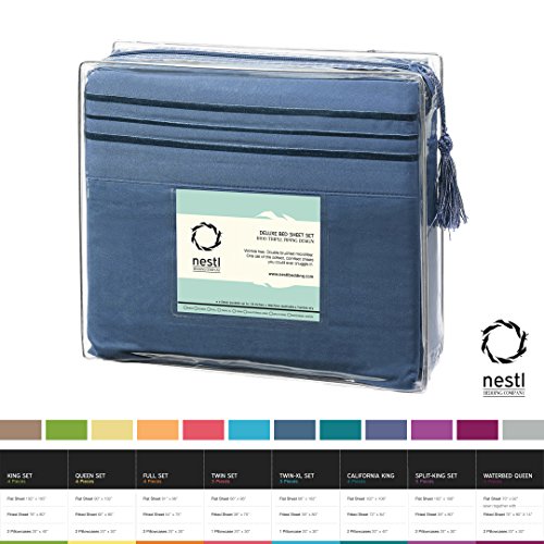 Bed Sheet Bedding Set, Full Double Size, Steel Blue, 100% Soft Brushed Microfiber Fabric with Deep Pocket Fitted Sheet, 1800 Luxury Bedding Collection, Hypoallergenic & Wrinkle Free Bedroom Linen Set By Nestl Bedding
