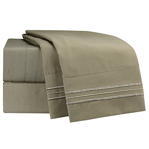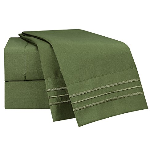 Bed Sheet Bedding Set, 100% Soft Brushed Microfiber with Deep Pocket Fitted Sheet - TWIN XL - SAGE OLIVE GREEN - 1800 Luxury Bedding Collection, Hypoallergenic & Wrinkle Free Bedroom Linen Set
