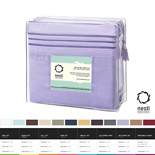 Bed Sheet Bedding Set, Twin XL, Lilac, 100% Soft Brushed Microfiber Fabric Deep Pocket Fitted Sheet, 1800 Luxury Bedding Collection, Hypoallergenic & Wrinkle Free Bedroom Linen Set By Nestl Bedding