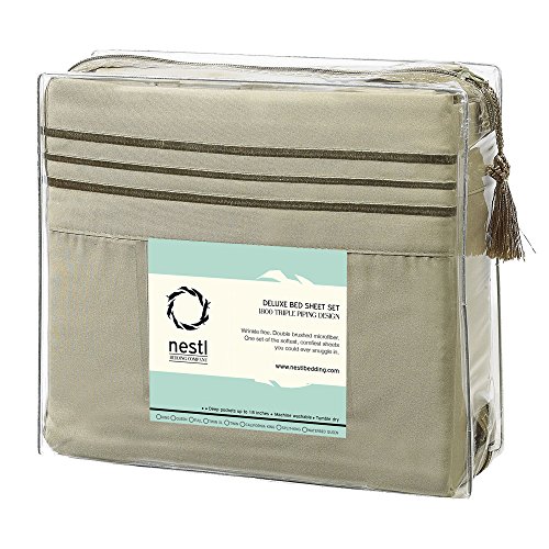 Nestl Bedding 1800 Collection Double Brushed Microfiber Linen, Queen Size Deep Pockets 4-Piece Bed Sheets Set, White