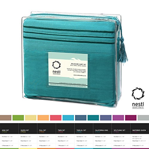 Bed Sheet Bedding Set, Cal King Size, Teal, 100% Soft Brushed Microfiber Fabric with Deep Pocket Fitted Sheet, 1800 Luxury Bedding Collection, Hypoallergenic & Wrinkle Free Bedroom Linen Set By Nestl Bedding