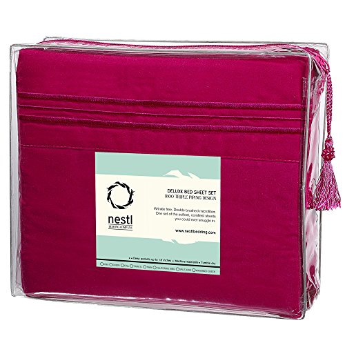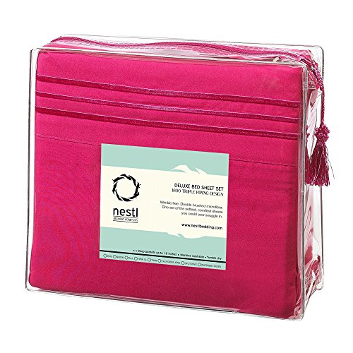 Bed Sheet Bedding Set, Full Double Size, Vivacious Magenta, 100% Soft Brushed Microfiber Fabric with Deep Pocket Fitted Sheet, 1800 Luxury Bedding Collection, Hypoallergenic & Wrinkle Free Bedroom Linen Set By Nestl Bedding