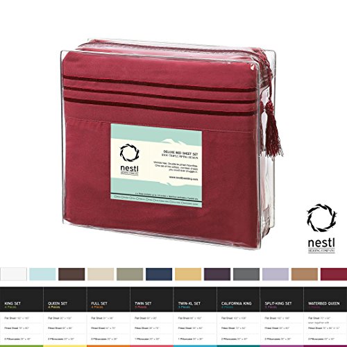 Cal King Size Bed Sheets Set, Red Burgundy, Best Quality Bedding Sheet Set, 4-Piece (California King), Extra Deep Pockets Fitted Sheet, 100% Luxury Soft Microfiber, Hypoallergenic, Cool & Breathable