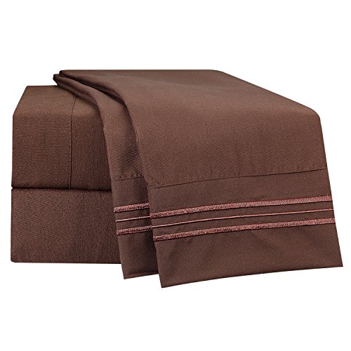 Bed Sheet Bedding Set, 100% Soft Brushed Microfiber with Deep Pocket Fitted Sheet - TWIN XL - CHOCOLATE BROWN - 1800 Luxury Bedding Collection, Hypoallergenic & Wrinkle Free Bedroom Linen Set