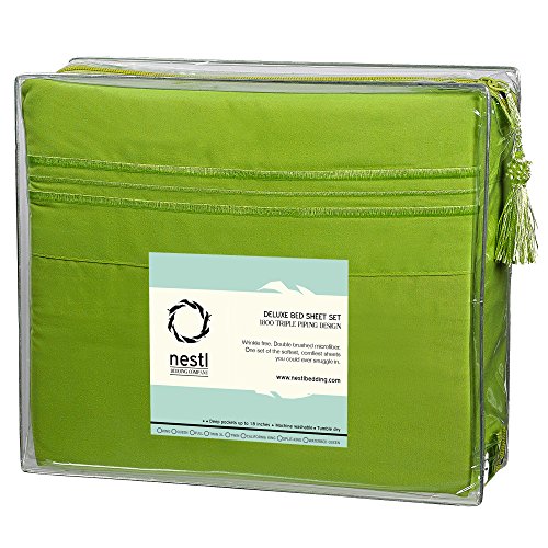 Bed Sheet Bedding Set, 100% Soft Brushed Microfiber with Deep Pocket Fitted Sheet - SPLIT KING - CALLA GREEN - 1800 Luxury Bedding Collection, Hypoallergenic & Wrinkle Free Bedroom Linen Set By Nestl Bedding