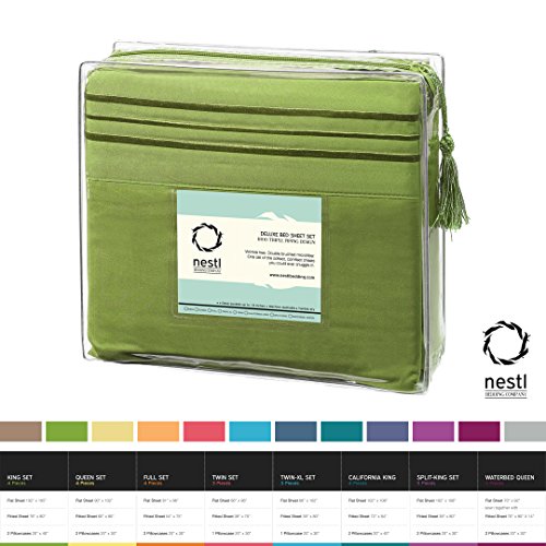 Bed Sheet Bedding Set, 100% Soft Brushed Microfiber with Deep Pocket Fitted Sheet - FULL - CALLA GREEN - 1800 Luxury Bedding Collection, Hypoallergenic & Wrinkle Free Bedroom Linen Set By Nestl Bedding