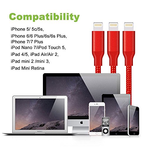 WARNING: Please kindly ensure the power outputs do not exceed 2.0A / 5V. Aonsen Durable iPhone Lightning Cable Sync Cord Uses High-Quality Copper Core. Ultra Fast lightning Ultra-Resistant. Extra Strong and Durable. Precise Interface Design. Unique High Voltage. Good Signal High-Speed Stability. Nylon Series Instead of plastic or polycarbonate sheathing, this Aonsen lightning cord features a unique high tensile nylon construction. Sturdy and tangle-free design, covered a with braided-nylon fiber jacket and anodized aluminum shell, which is durable and sturdier than normal lightning cables but is also flexible and tangle- free. The braided finish looks and feels great, but also prevents tangles, increases strength and is easy to carry. Perfect Compatibility Complete lightning and sync compatibility with new iPhone 7, iPhone 7 plus, iPhone 5, iPhone 5s, iPhone 5c, iPhone 6, iPhone 6 plus, iPhone 6s, iPhone 6s plus, iPhone SE, iPad Pro, iPad Air, iPad Air 2, iPad mini, iPad mini 2, iPad mini 3, iPad mini 4, iPad 4, iPod Touch (5 Gen), iPod Nano 7, Compatible with the latest iOS10 operating system without any error messages. Amazing Pack Of 3 At A Great Price! One package includes amazing pack of 10ft tangle free nylon fiber braided lightning cords at an incredible value price. From now on, you don't have to "live" by the wall-plug, but can lounge in bed or on the sofa using your iPhone/iPad/iPod while lightning. Warranty Policy Enjoy brand new replacement or a refund within ONE YEAR. BEWARE of COUNTERFEITS: CHECK SELLER NAME BEFORE PURCHASING! Aonsen PRODUCTS CAN ONLY BE SOLD by 'Aonsen - Fulfilled by Amazon' or 'Aonsen'. 0 |