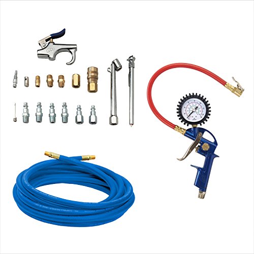 -. Feature : Pro Bundle includes Tire Inflator with Gauge, 3/8-Inch x 25 PVC Air Hose, and 17-pc 1/4-in Air Tool And Accessory Kit / Inflation gun, chuck, and gauge are all combined in one easy to use unit / Clip-on design enables hands-free chuck use / Built-in relief valve for reducing pressure in over-inflated tires / Includes flexible hose for easier use
