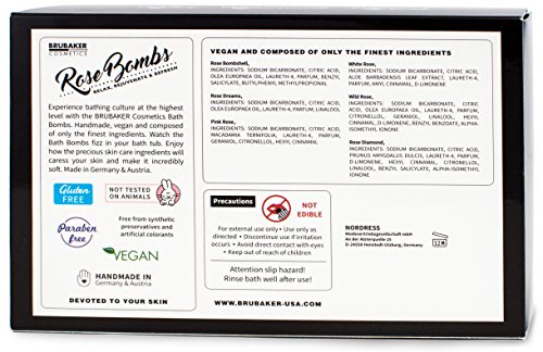 BRUBAKER Bath Bombs Gift Set "Rose Bombs" - 6 Handmade Luxury Spa Bath Fizzies - All Natural, Vegan, Organic Ingredients - Macadamia Nut Oil, Olive Oil,...