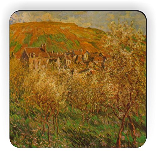 Rikki Knight Claude Monet Art Blooming Apple Trees Design Square Fridge Magnet