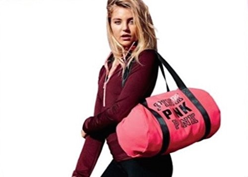 -. Feature : Victoria's Secret PINK Duffle Bag / 9.5 inches high x 18 inches long x 9.5 inches deep / Dual carry handles with 9 inch drop / Zip top closure / Printed logos on front